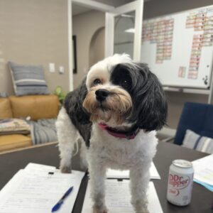 If you are here on a Friday or Saturday or just about any other day, you will likely see Sori, our lovable office pet!